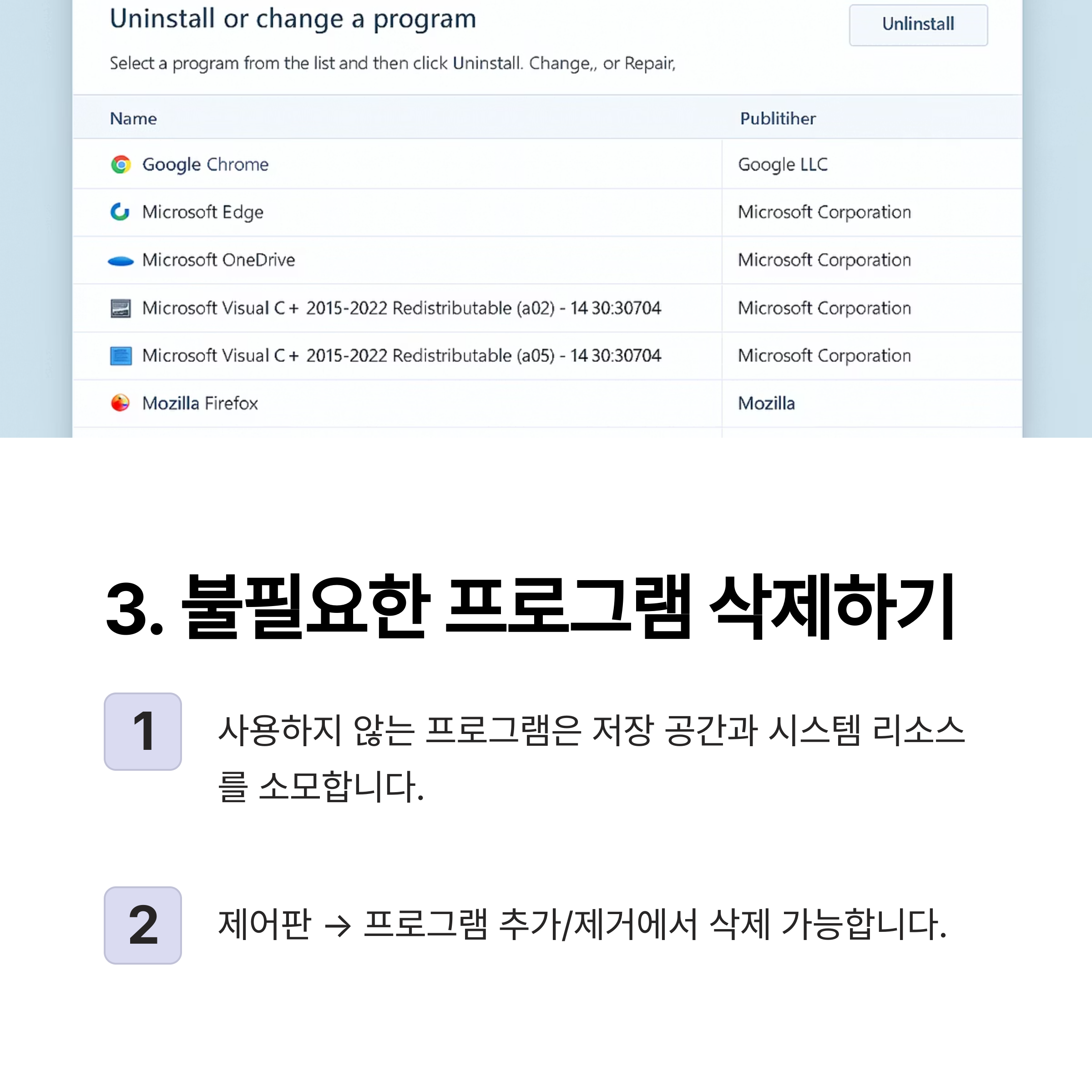 3. 불필요한 프로그램 삭제로 여유 공간 확보