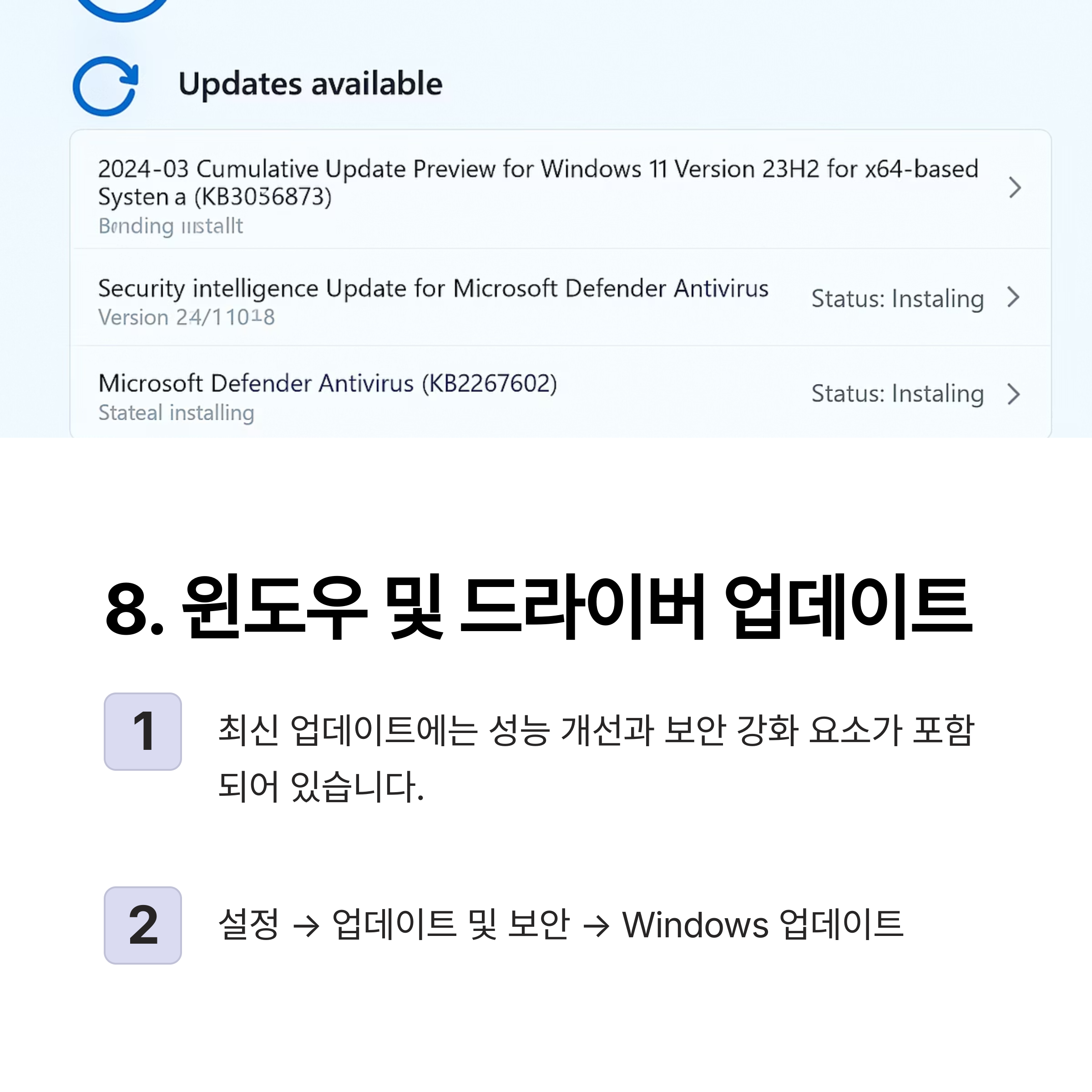 8. 윈도우 및 드라이버 최신 업데이트