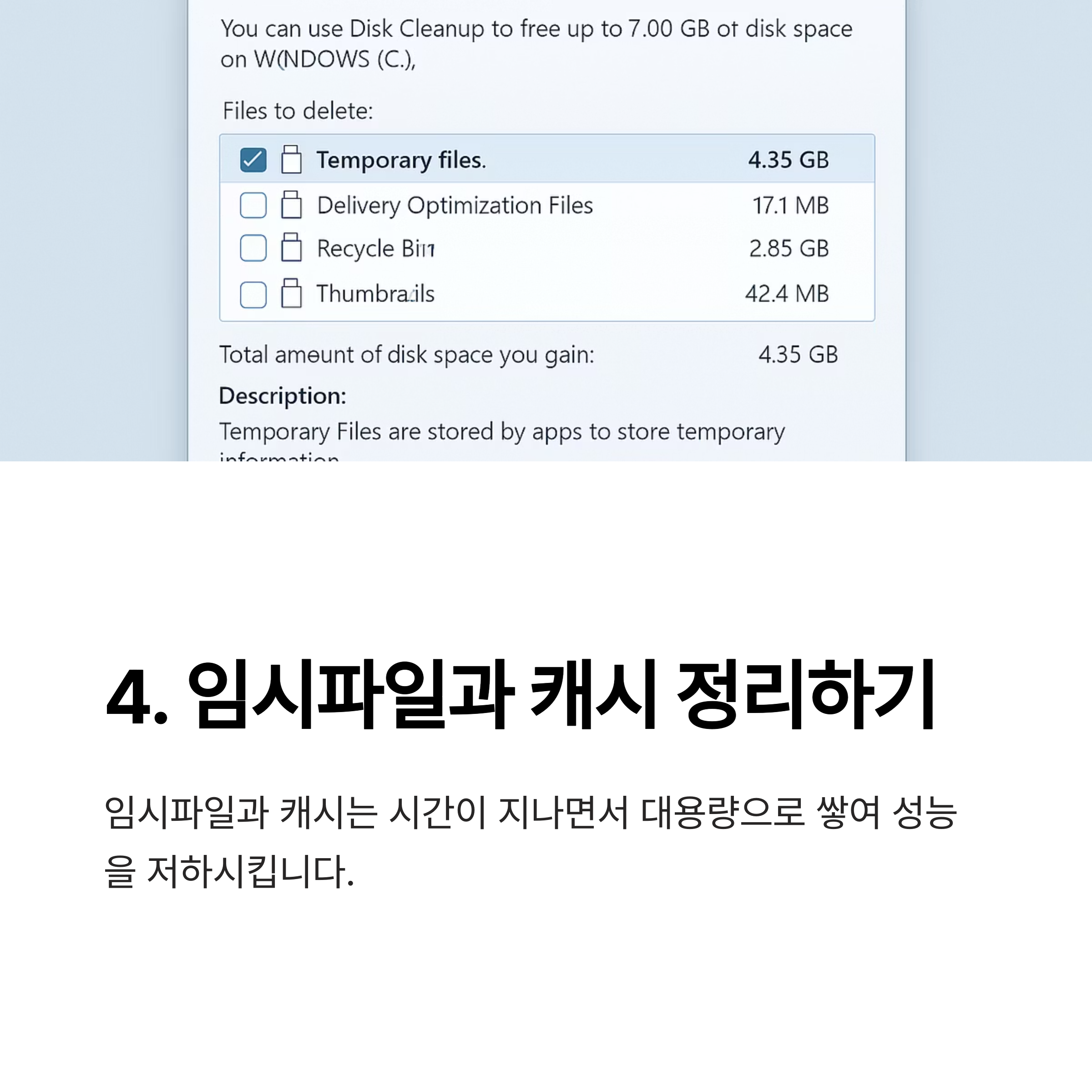 4. 임시파일·캐시 정리 및 디스크 공간 확보
