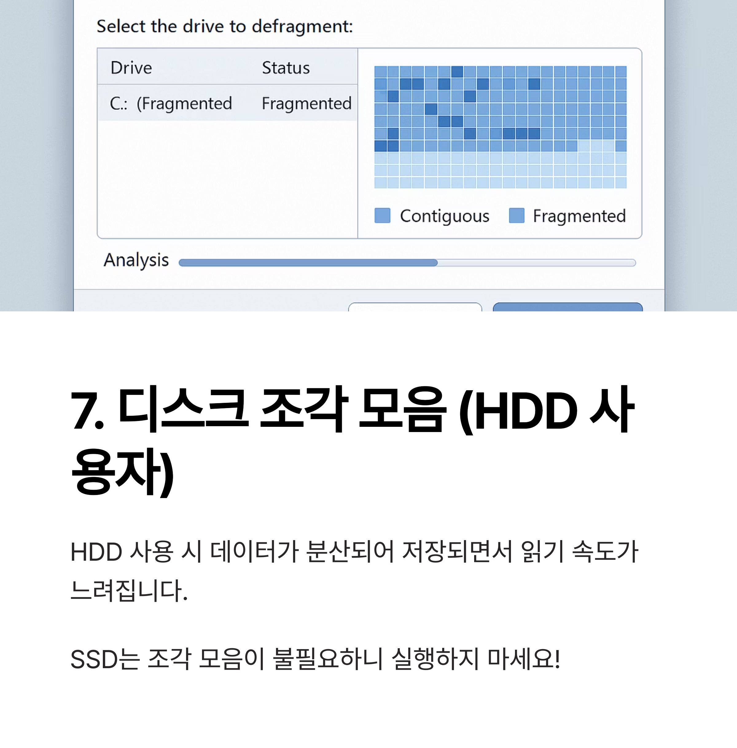 7. 디스크 조각 모음 (HDD 사용자 한정)