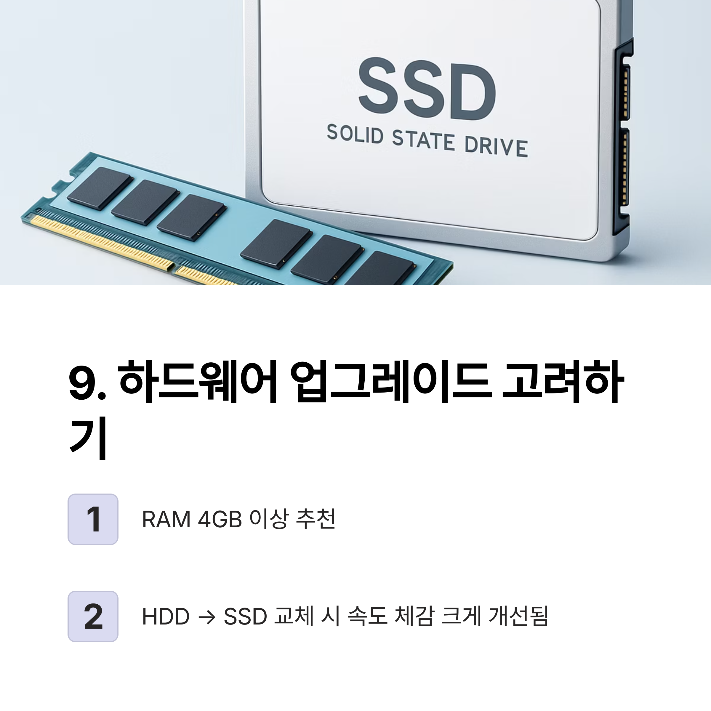 소프트웨어적인 최적화만으로는 한계가 있을 때 하드웨어 업그레이드를 고려해보세요.