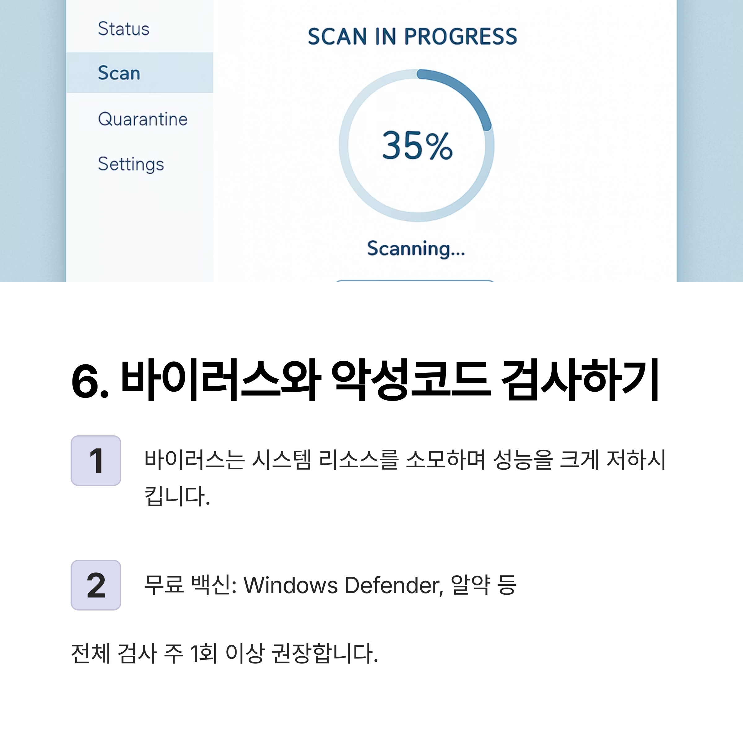바이러스나 악성코드는 시스템 리소스를 소모하며 컴퓨터 성능을 크게 저하시킵니다.