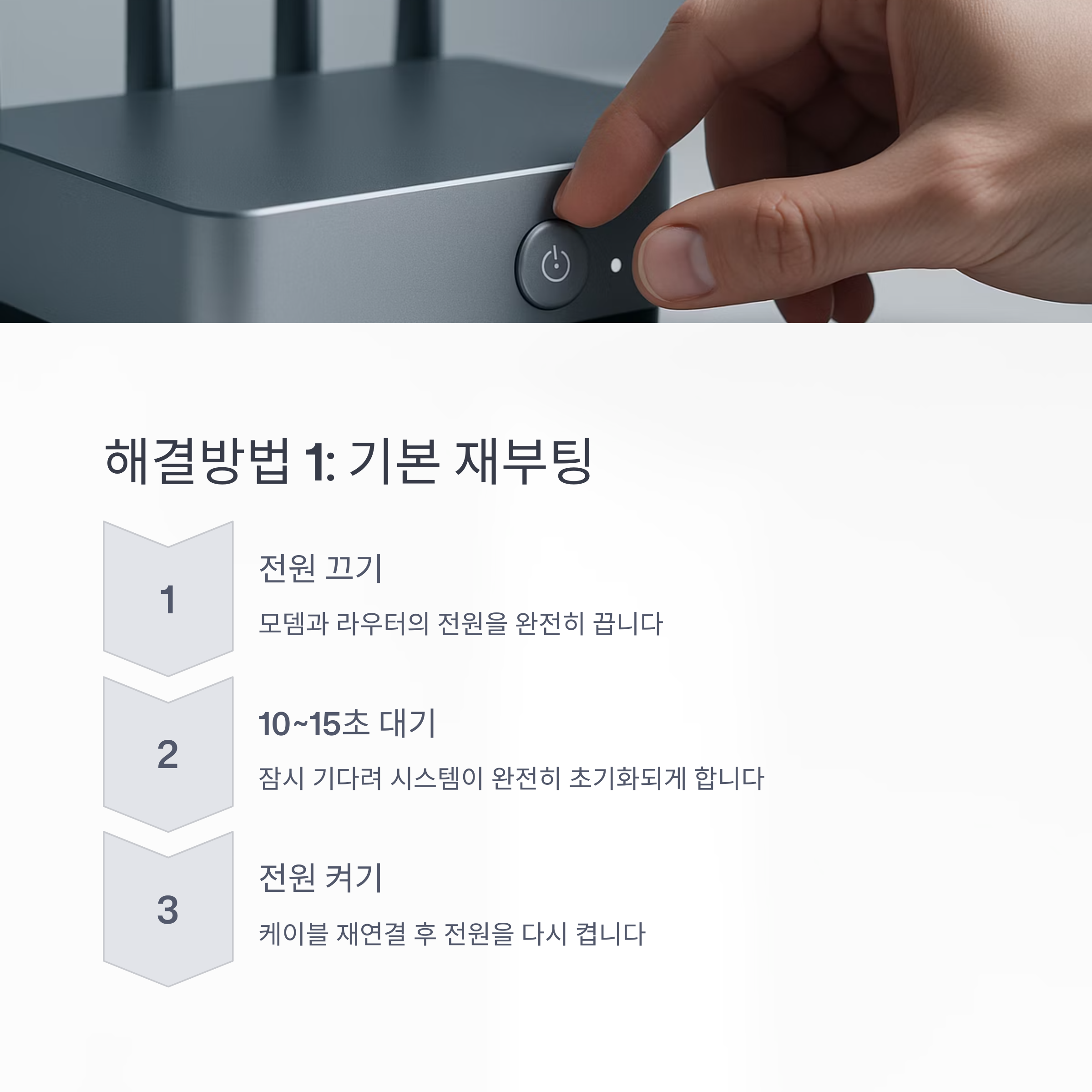 🔍 해결 순서: 속도 측정 → 재부팅 → 백그라운드 점검 → 위치 최적화 → DNS 설정 변경 → 유선 연결 → 업데이트 확인