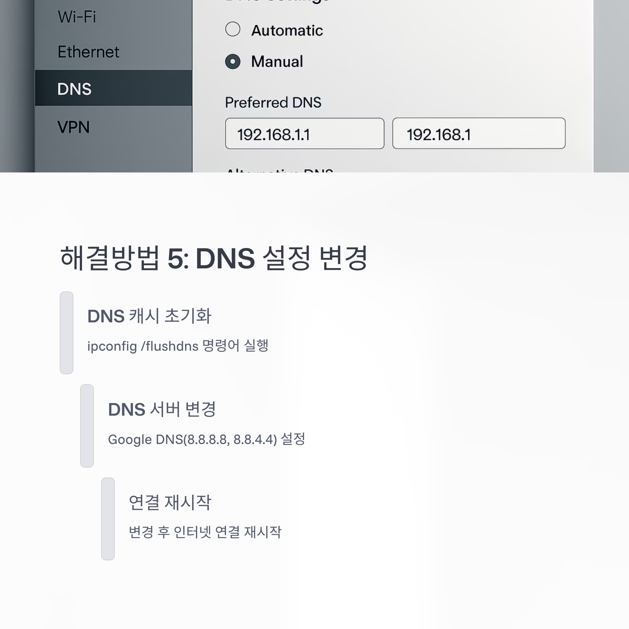 - 8.8.8.8, 8.8.4.4(Google DNS) 사용 권장