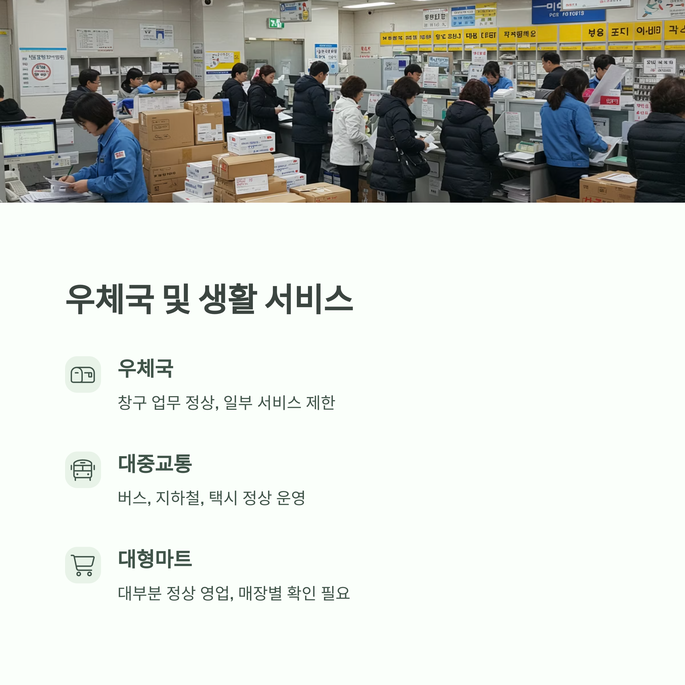| 우체국 | 창구 업무 정상, 일부 제한 | |