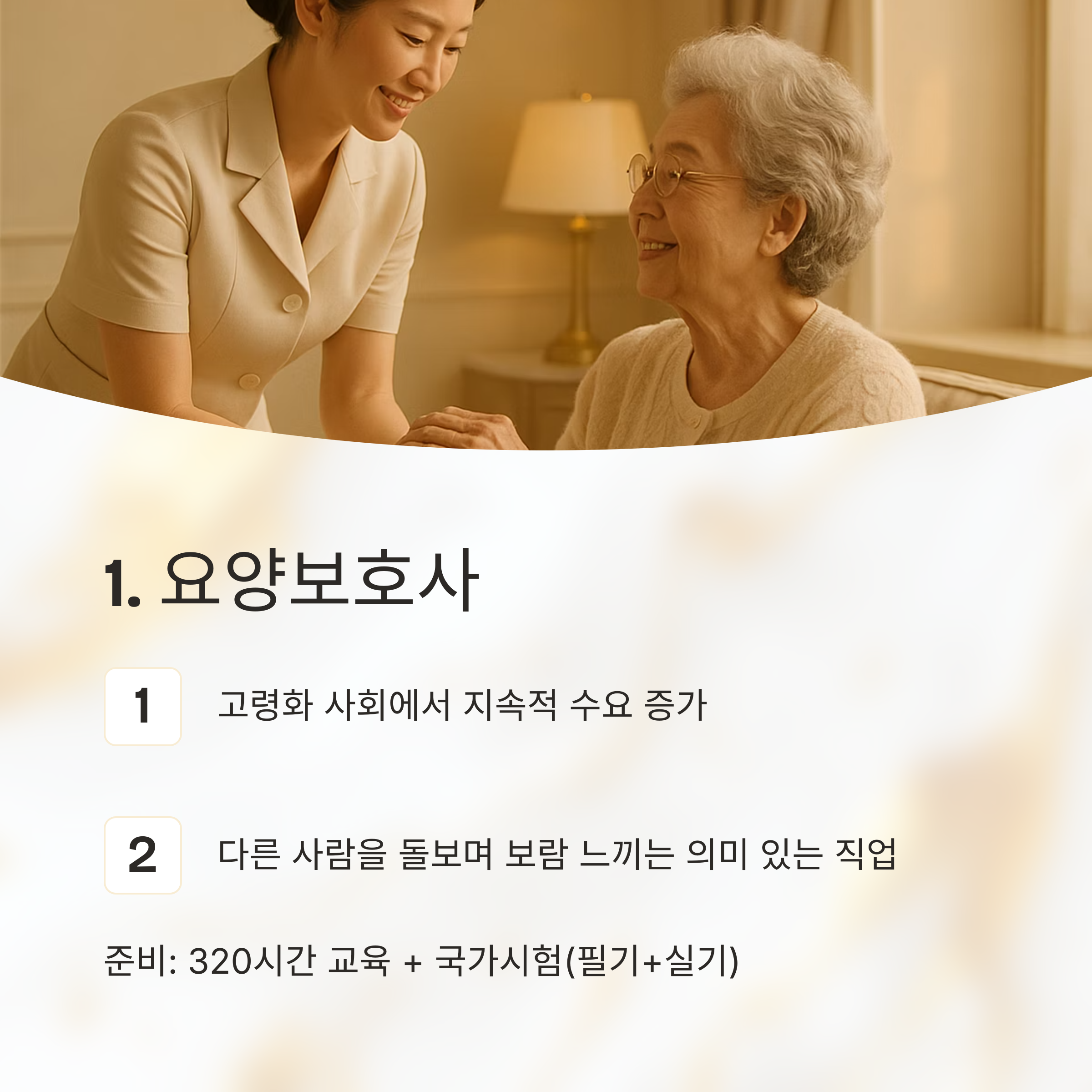 1. 요양보호사: 따뜻한 손길로 인생 2막 시작