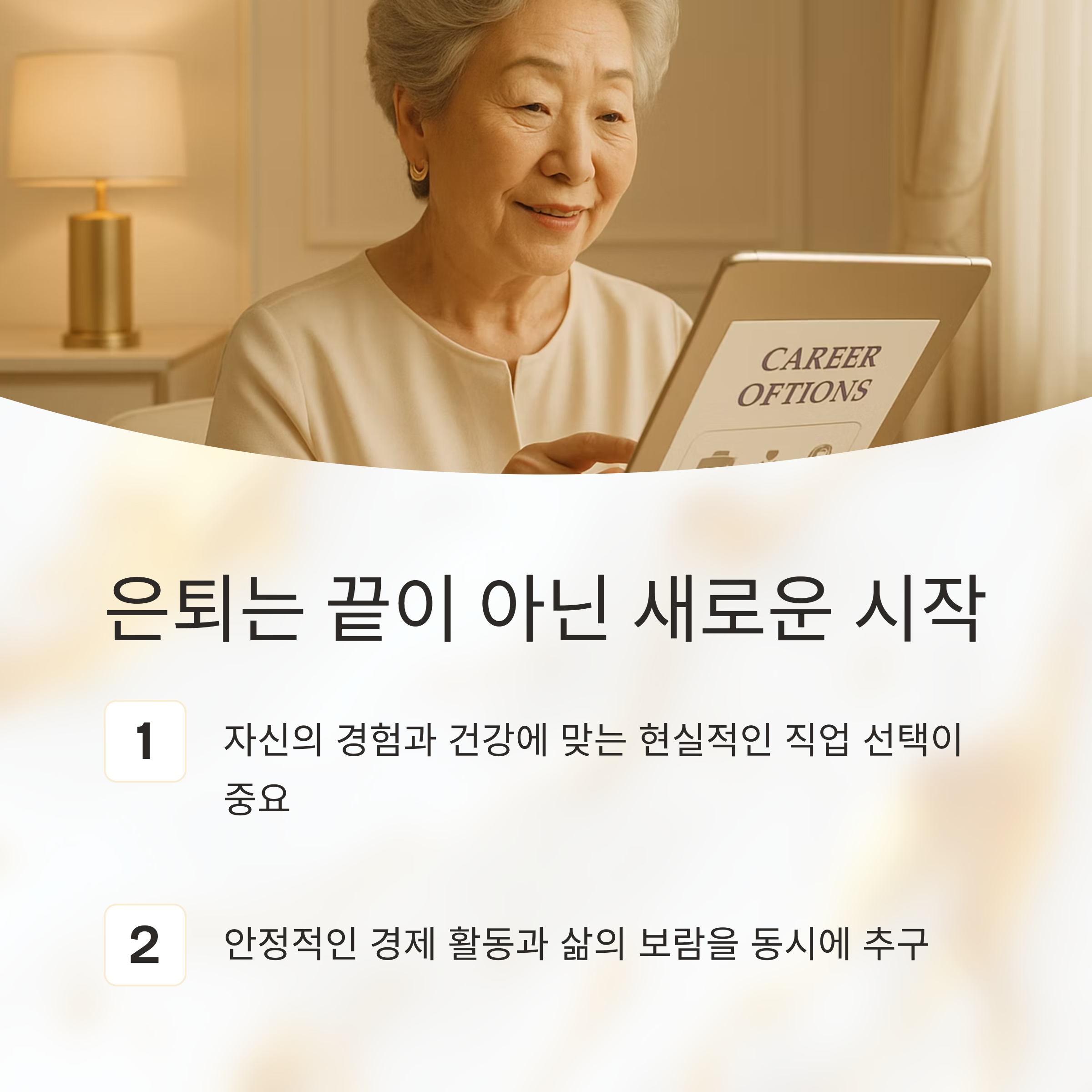 60대에도 안정적인 경제 활동과 삶의 보람을 동시에 누릴 수 있는 방법은 무엇일까요?