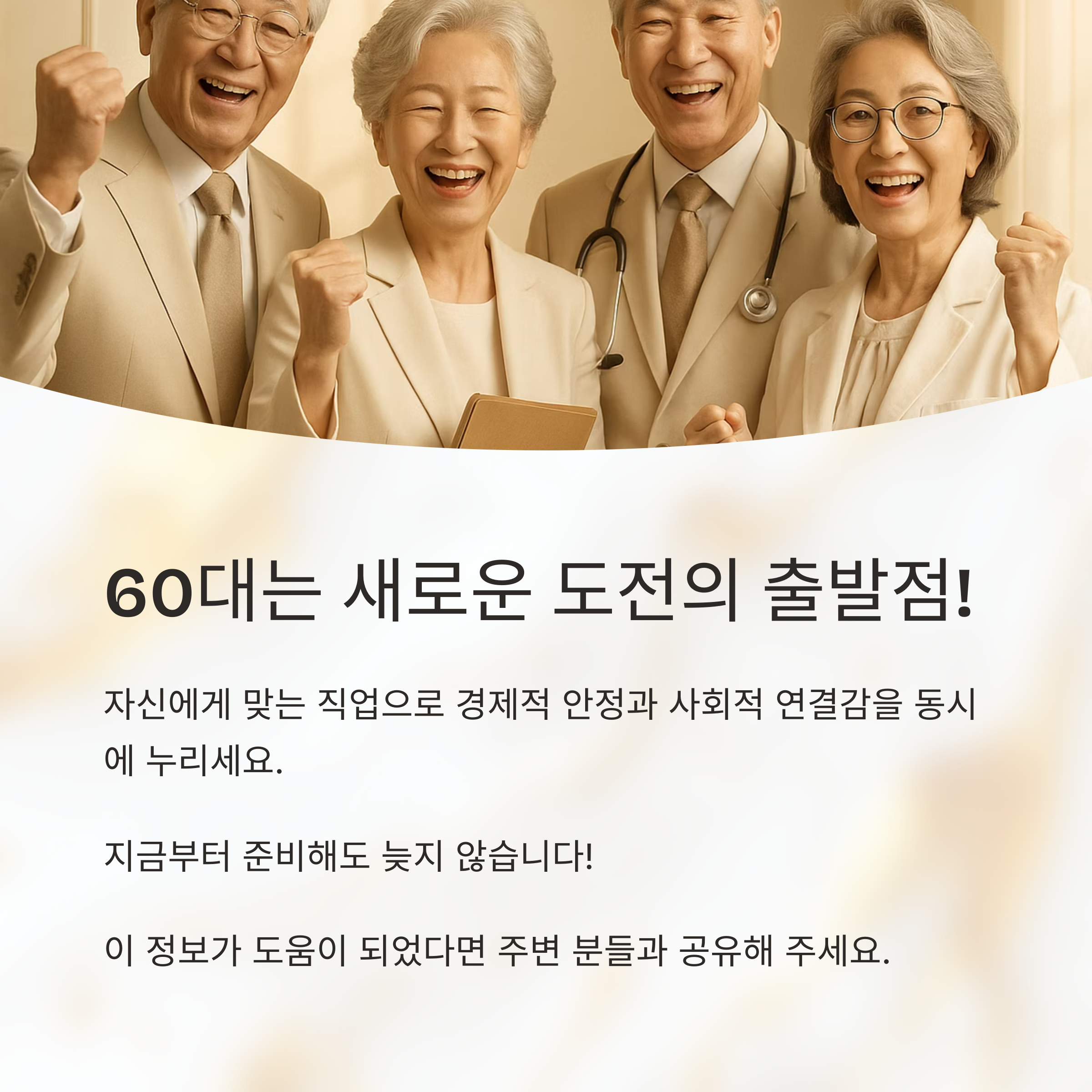60대는 은퇴가 끝이 아니라 '새로운 도전의 출발점'입니다.