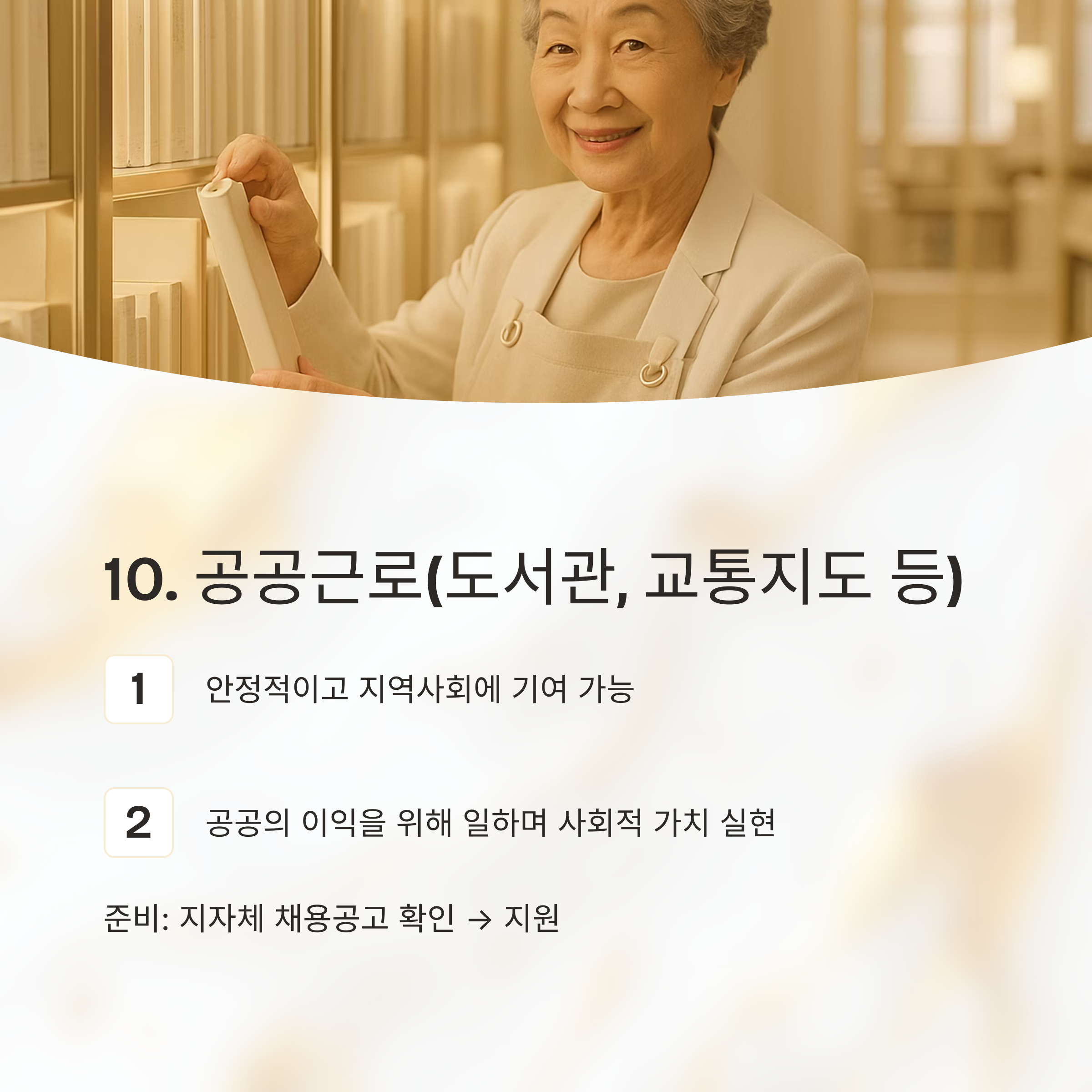 10. 공공근로(도서관, 교통지도 등): 의미 있는 일자리