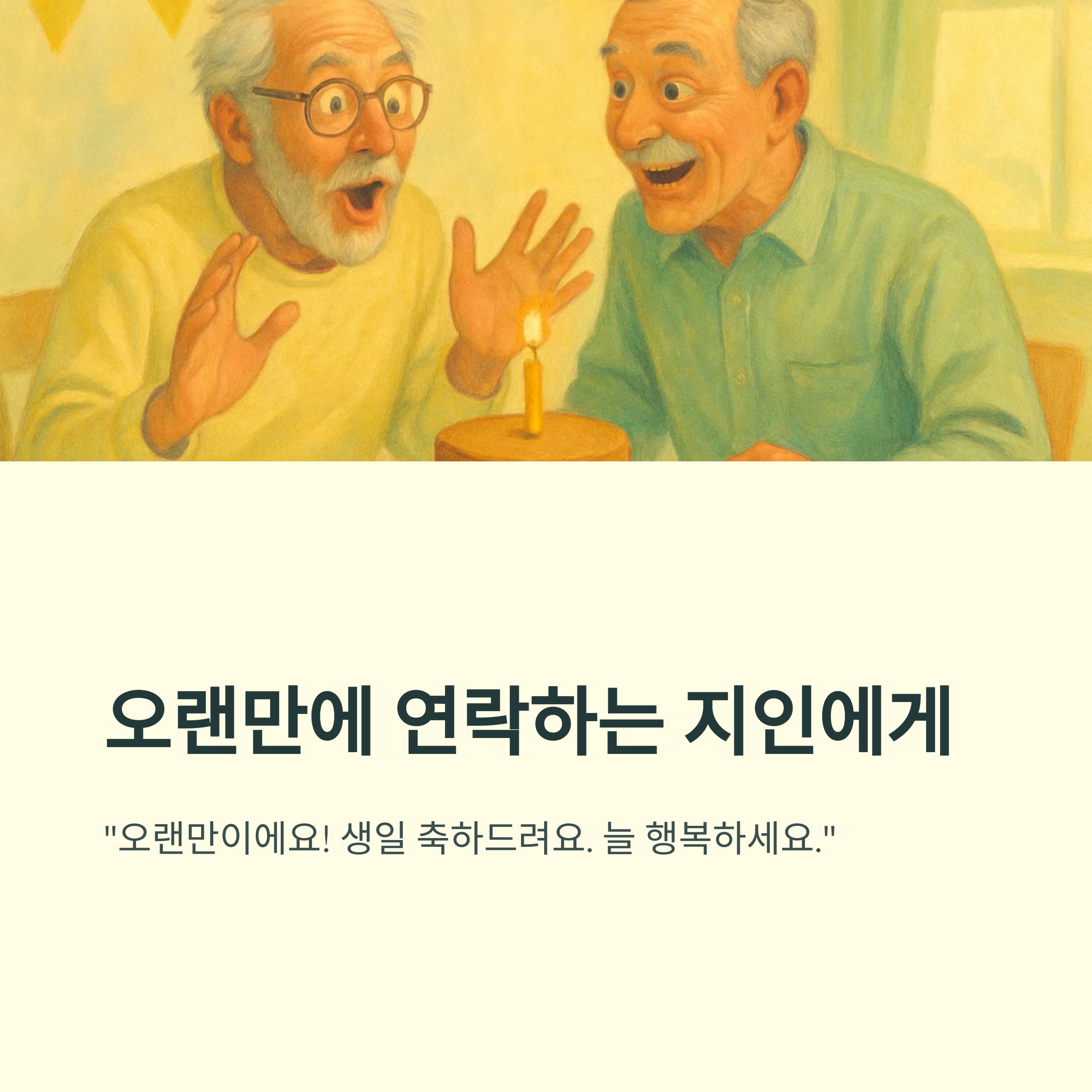 "오랜만이에요! 생일 축하드려요. 늘 행복하세요." 정도면 충분합니다.