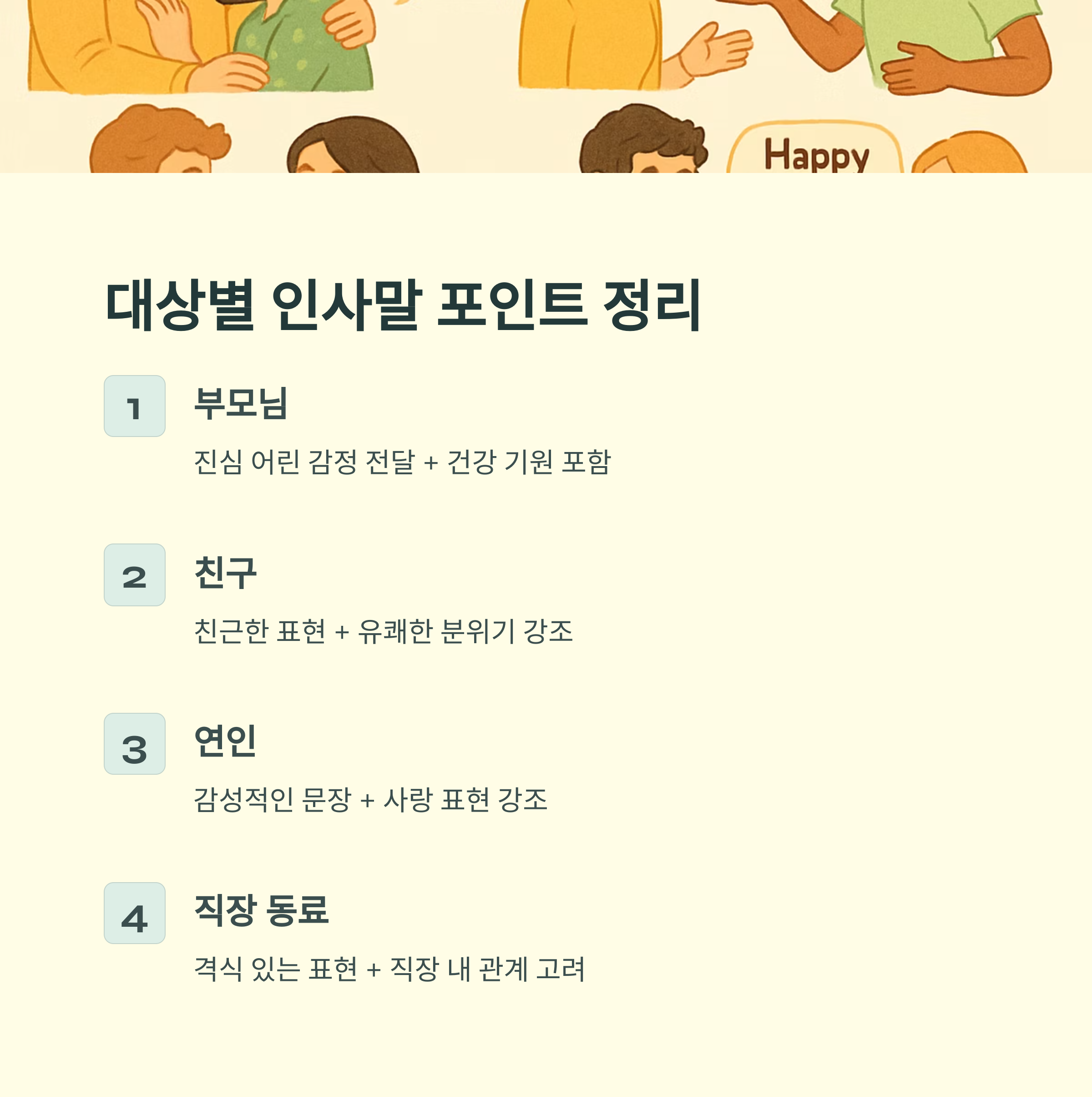 - 대상의 연령과 관계에 맞게 톤 조절