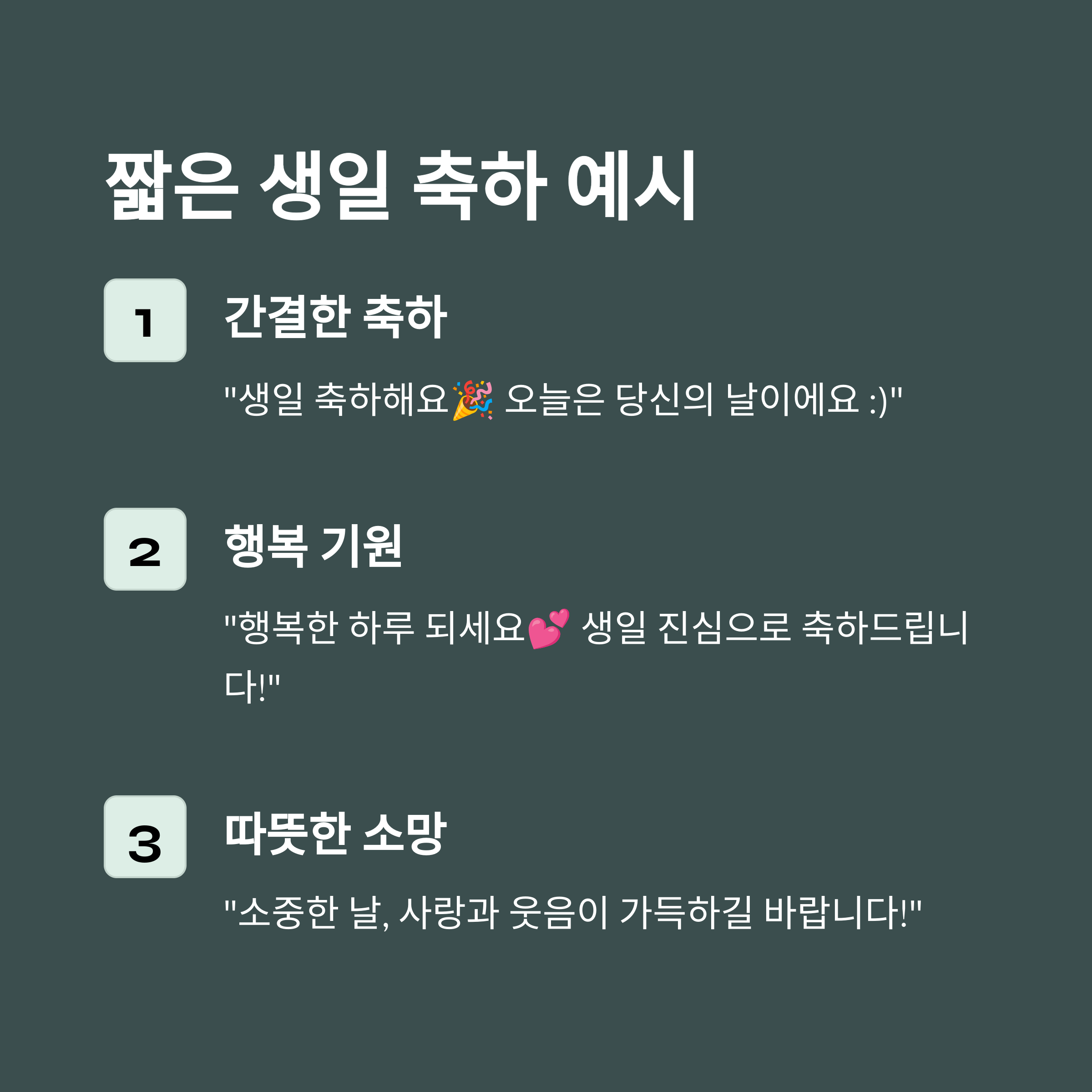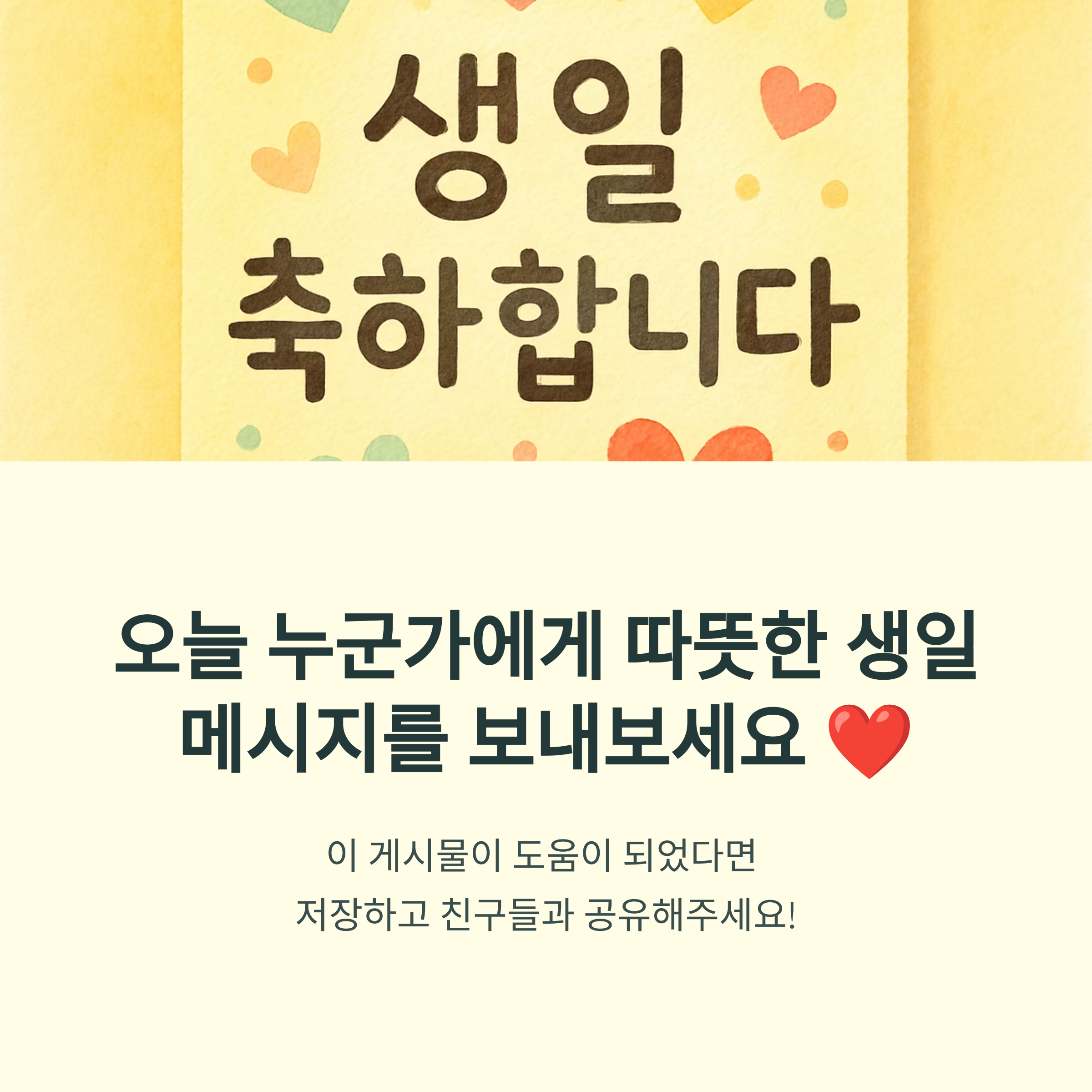 - "행복한 하루 되세요💕 생일 진심으로 축하드립니다!"