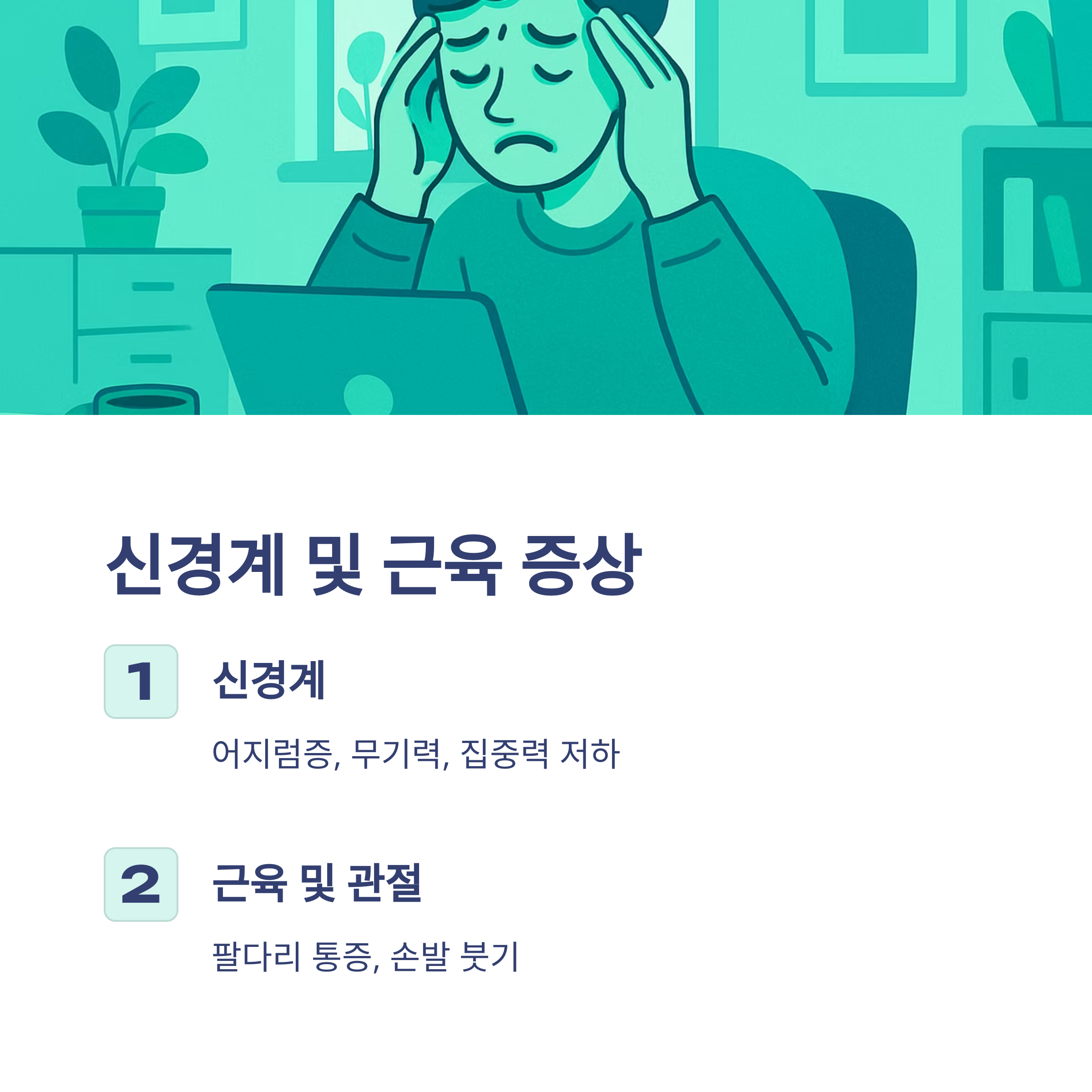 어지럼증, 무기력, 집중력 저하