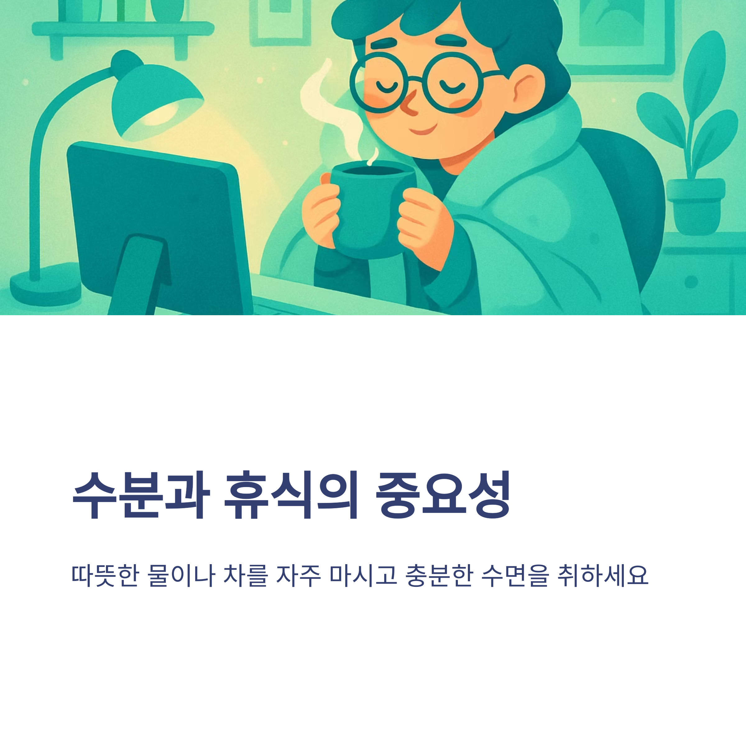 - 따뜻한 물이나 차 자주 마시기, 충분한 수면