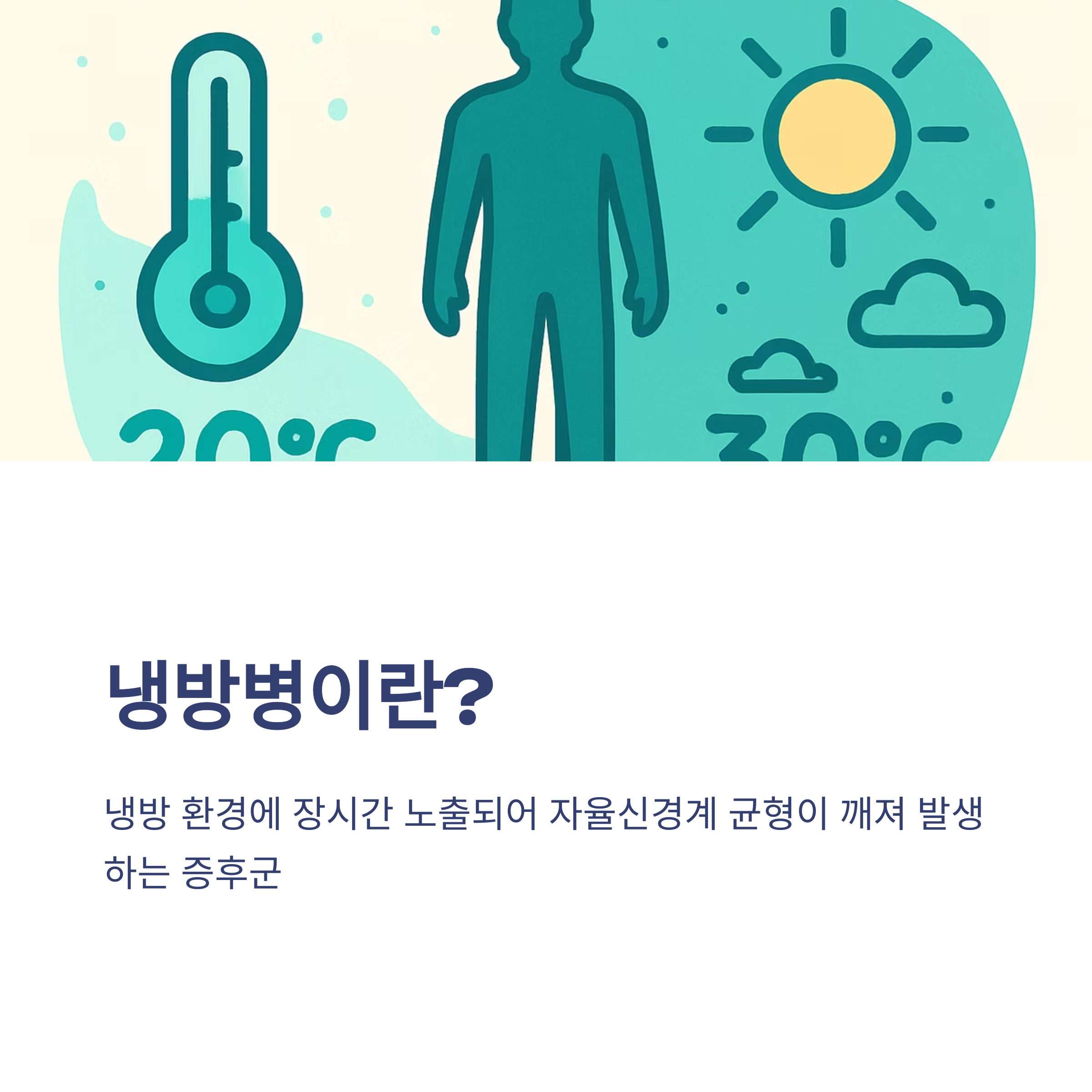 냉방병은 의학적 진단명은 아니지만, 냉방 환경에 장시간 노출되었을 때 자율신경계의 균형이 깨져 발생하는 증후군입니다.