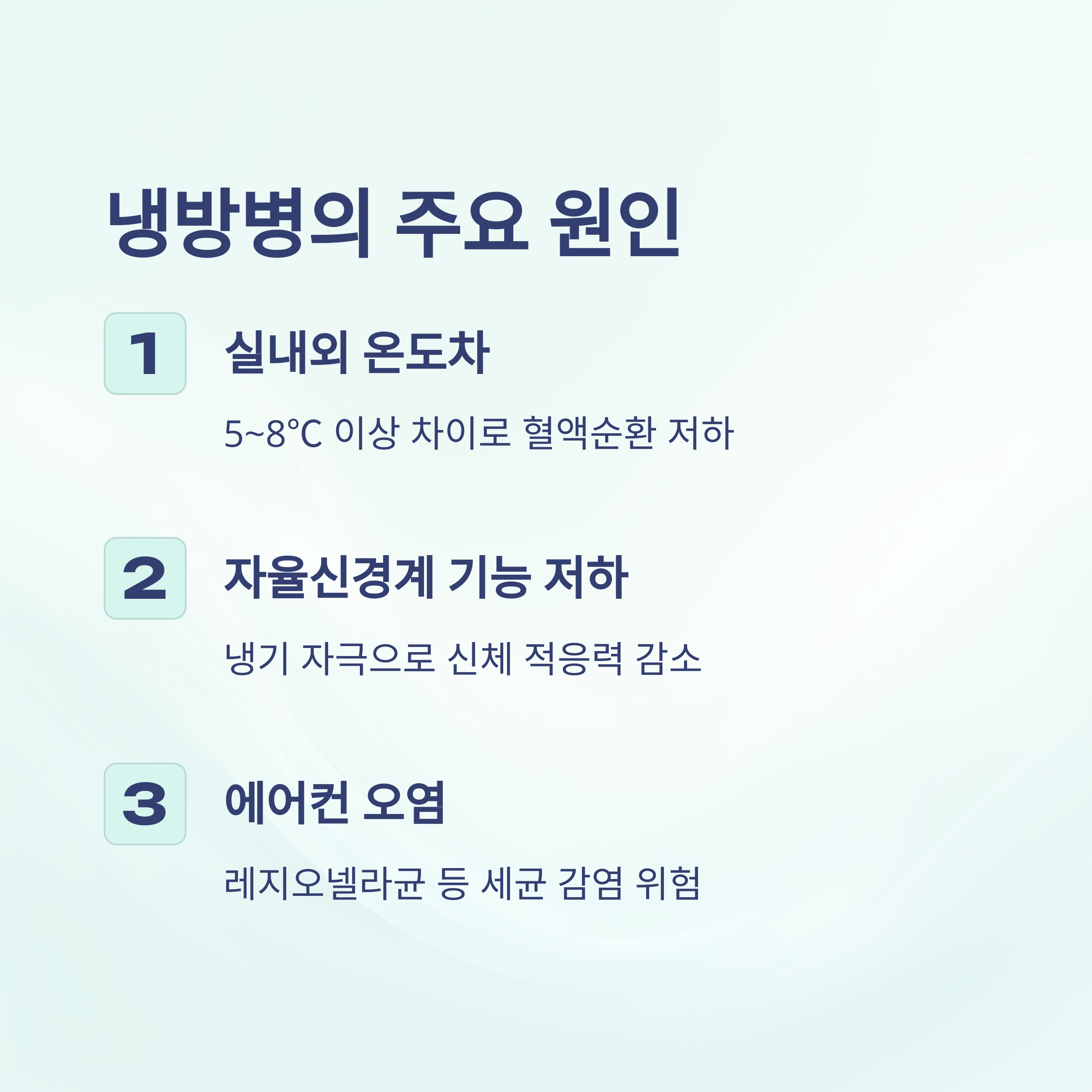 | 자율신경계 기능 저하 | 냉기 자극으로 신체 적응력이 떨어짐 |
