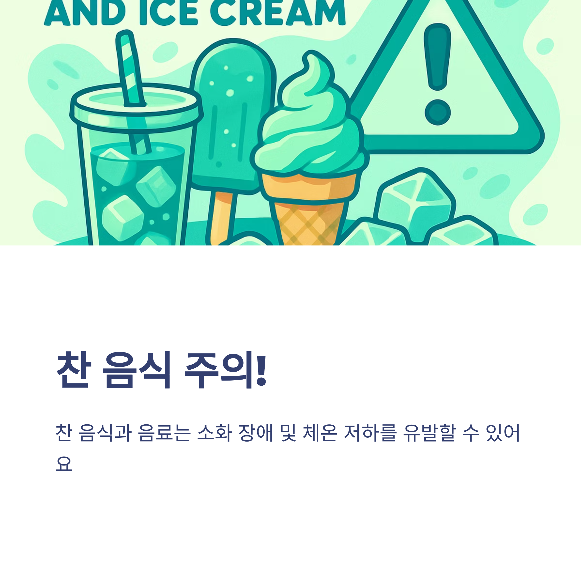 💡 찬 음식과 음료는 소화 장애 및 체온 저하를 유발할 수 있으므로 가급적 피하세요.